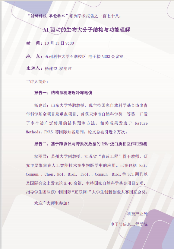 报告地点:苏州科技大学石湖校区 电子楼 A303 会议室