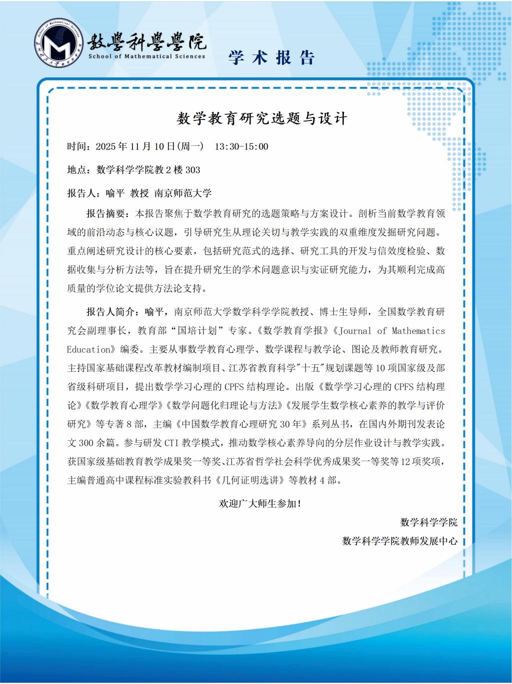 报告地点:数学科学学院教2楼303