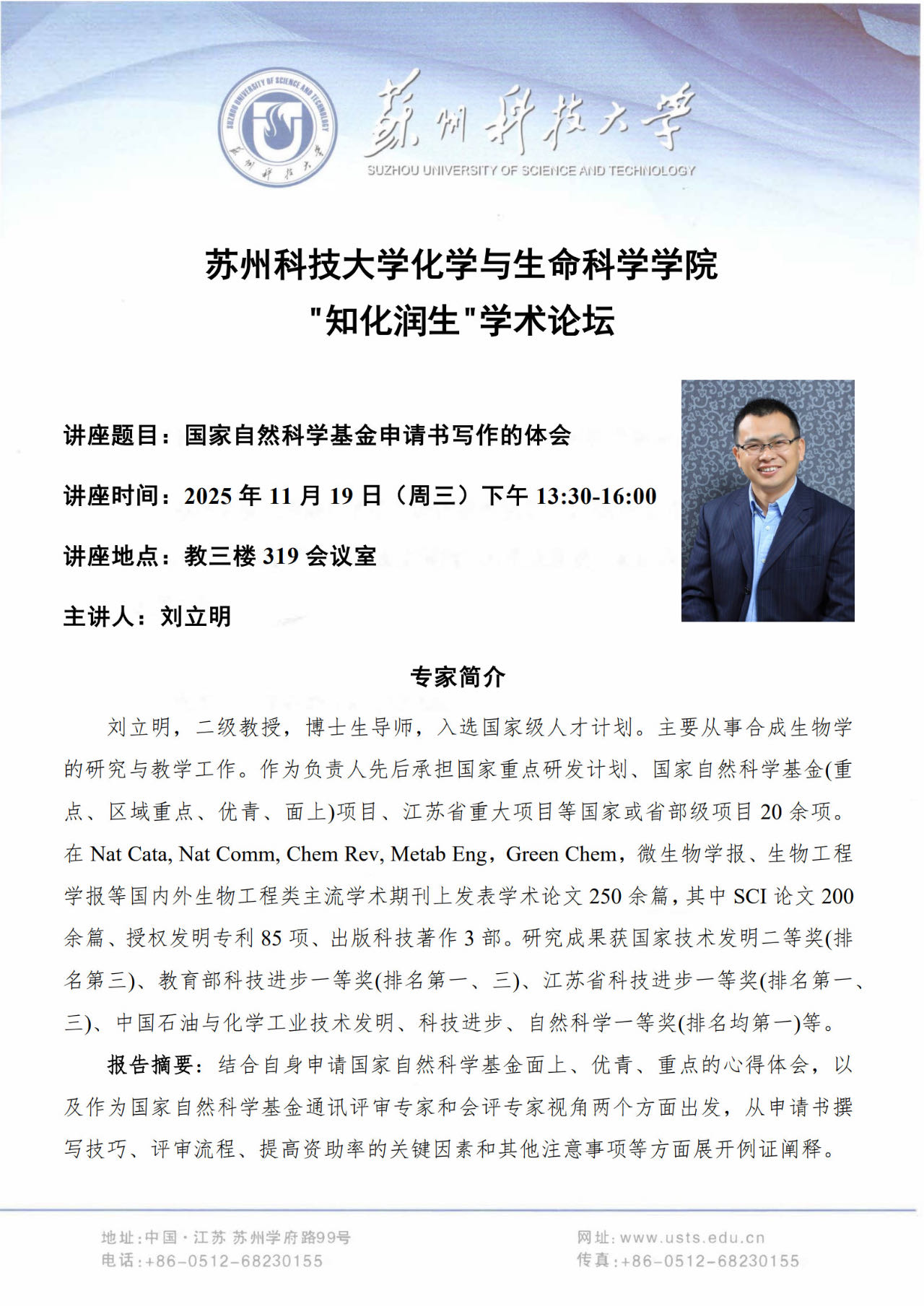 报告地点:化生学院教三楼319