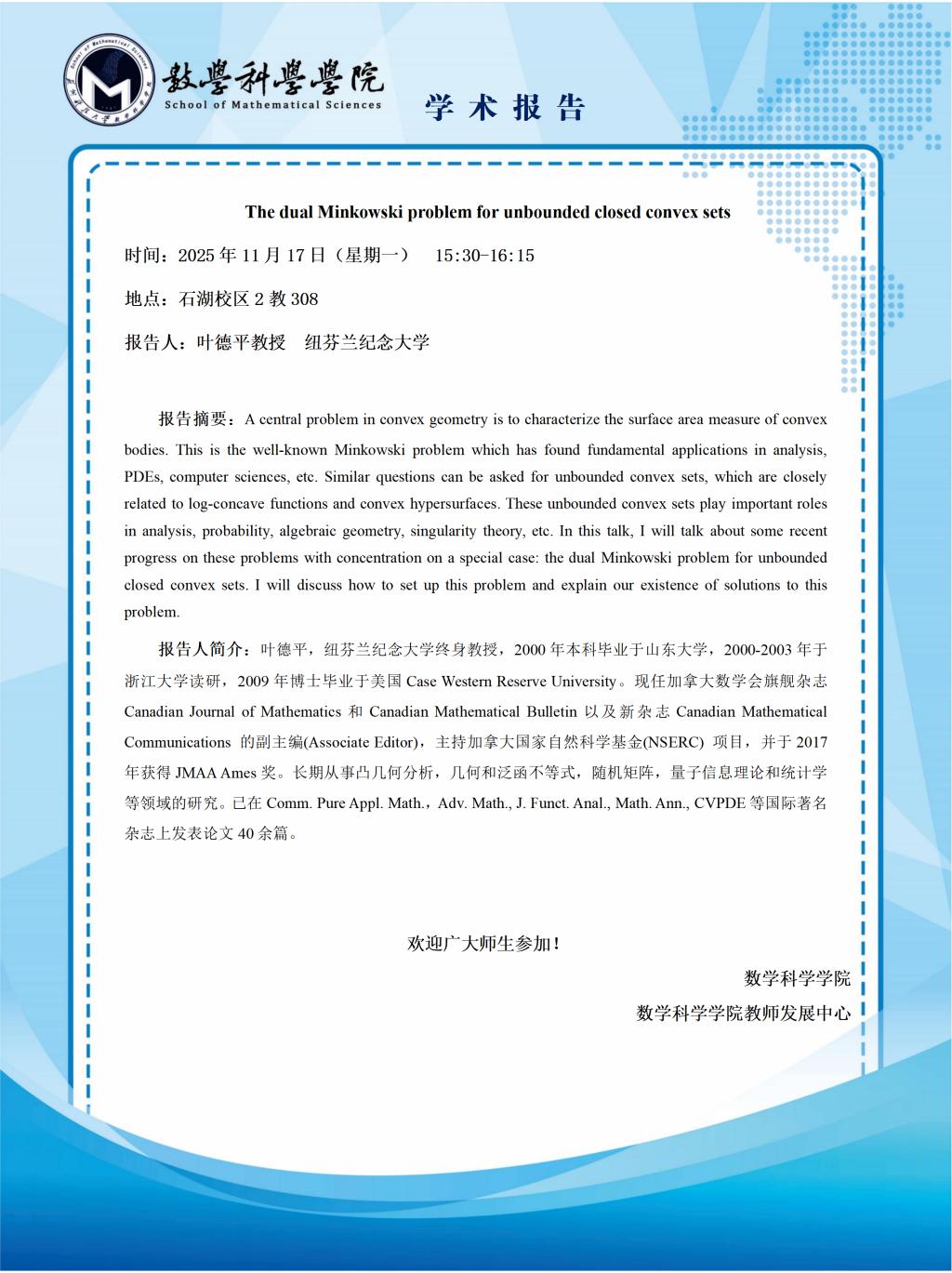 报告地点:石湖校区2教308