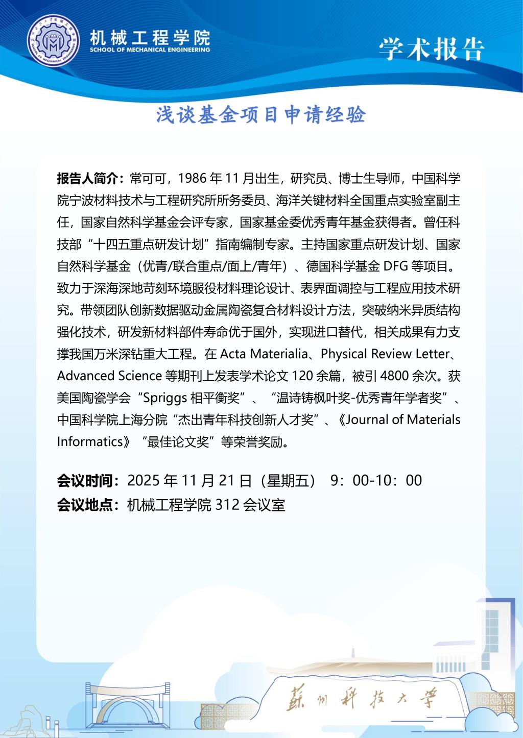 报告地点:天平校区机械工程学院三楼会议室