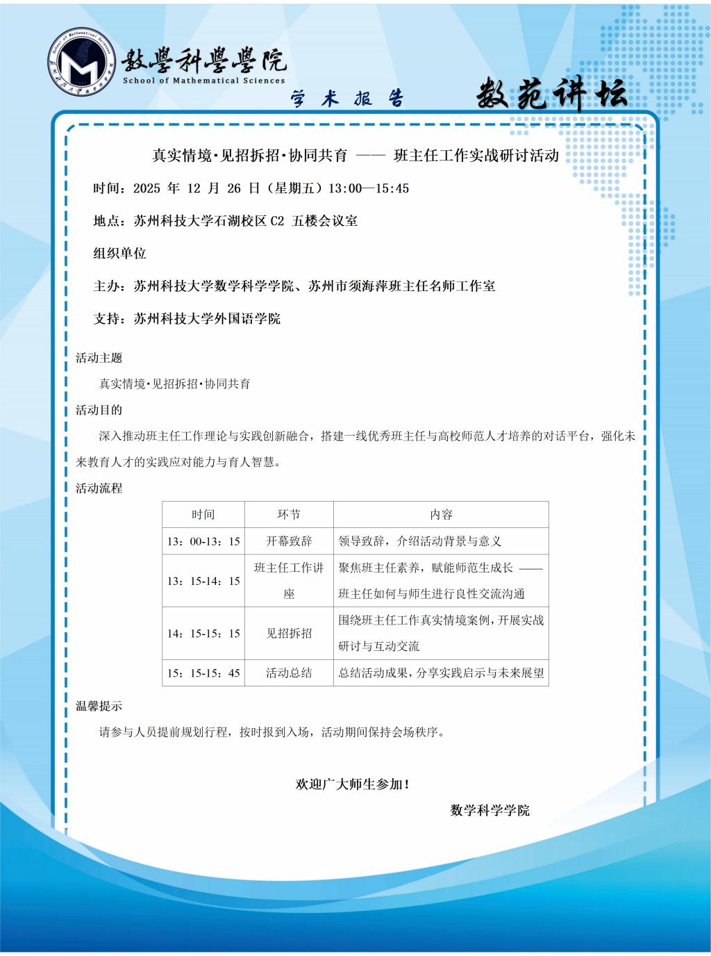 报告地点:苏州科技大学石湖校区C2五楼会议室